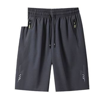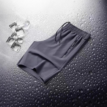 Pantalones cortos holgados de seda helada de verano para hombre, pantalones cortos elásticos deportivos informales de secado rápido de talla grande, pantalones cortos de malla de punto, cintura media sólida