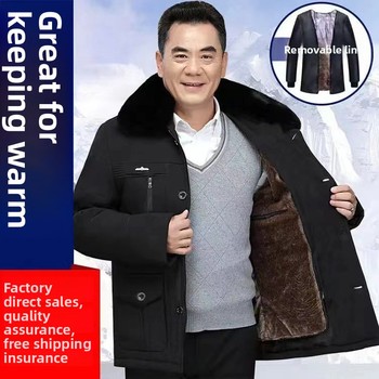 Chaqueta informal con forro polar para Otoño e Invierno Para papá y abuelo, abrigo grueso con cuello levantado, ropa cálida de algodón para hombre, venta al por mayor